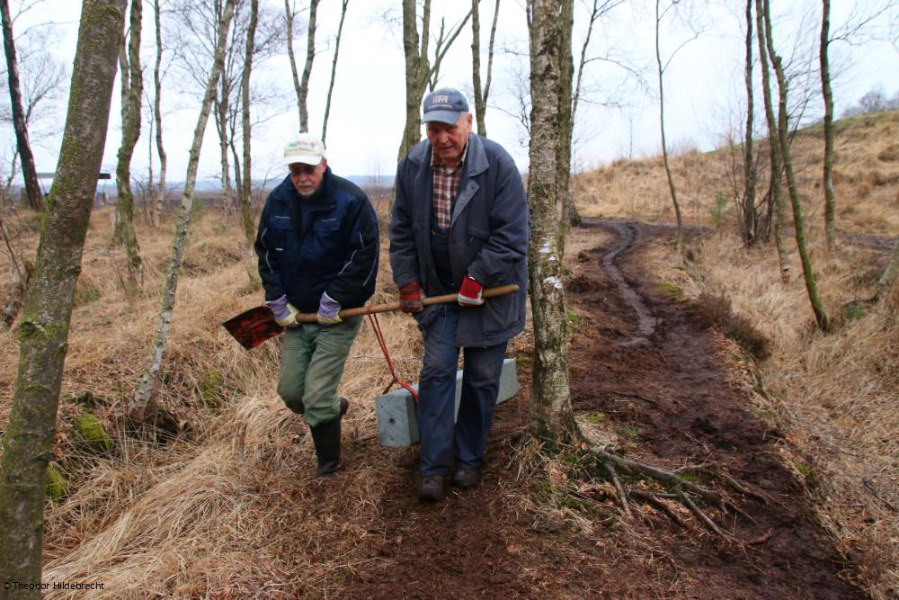 Im Verborgenen bleibt jedoch, welch Aufwand die Erstellung eines solchen Pfades bedeutet. Wer arbeitet die Infotafeln aus und gestaltet sie, wer legt die Bohlenwege an, wer baut Unterstände, wer plant das alles überhaupt?